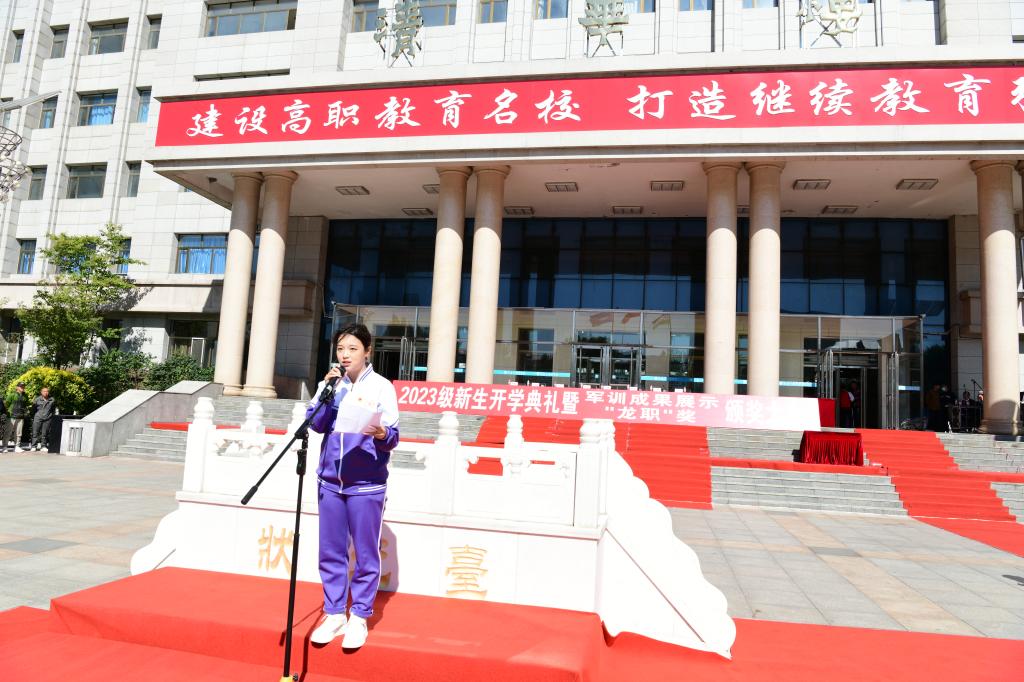 会计金融学院大数据与会计专业马雨竹代表全体2023级新生发言。她说,自己为能够成为一名“龙职”学子感到骄傲和自豪。在接下来的大学生活中,既要怀揣“自强有为,兴业报国”的“龙职”精神,更要把“强国有我,请党放心”的铮铮誓言牢记心间,用奋斗去点燃绚丽的青春,用知识武装头脑,在担当中历练,在尽责中成长,让青春在新时代新征程的火热实践中绽放绚丽之花。