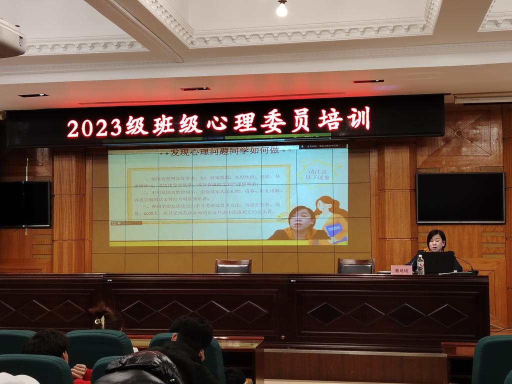 为充分发挥班级心理委员在大学生心理健康教育工作中的作用,不断加强心理委员队伍建设,提升心理委员的整体素质,更好地开展心理自助、互助以及心理危机预警等工作,12月4日至7日,学校对2023级9个二级学院一百二十余名心理委员开展了四场系列培训活动。心理健康教育中心的四位教师分别就心理委员的职责与角色、常见心理问题与异常心理现象的识别、心理危机的识别与干预、以及朋辈心理辅导等四个主题进行了深入的讲座。蔡培培老师介绍了心理委员在学校心理健康教育中的角色,包括提供心理支持和咨询服务、组织心理健康教育活动等;崔秀明老师介绍了常见的心理问题,如焦虑、抑郁以及异常心理现象的识别方法等;陈雪老师介绍了如何迅速发现心理危机事件和有效的应对方法;谭志远老师分享了朋辈心理辅导的方法和技术,鼓励心理委员在同学之间建立互助和支持的关系。