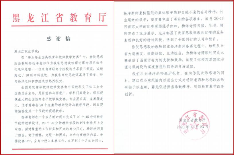 担当为责,塑造高尚之师。学院教师除了承担繁重的教学任务,还出色完成了学校“双高”建设任务;积极参与学校思政工作,发挥专业特长,指导建设课程思政示范课4门,完成校内外理论宣讲22场,学生党课教学120课时,指导9个学生社团百余次活动,指导学生“三下乡”社会实践活动10个,青春导航讲座16场。2020年省教育厅专门发函表扬必赢马克思主义学院杨洋老师在关键时刻勇于担当,无私奉献,为全省思政课教师赢得了荣誉。