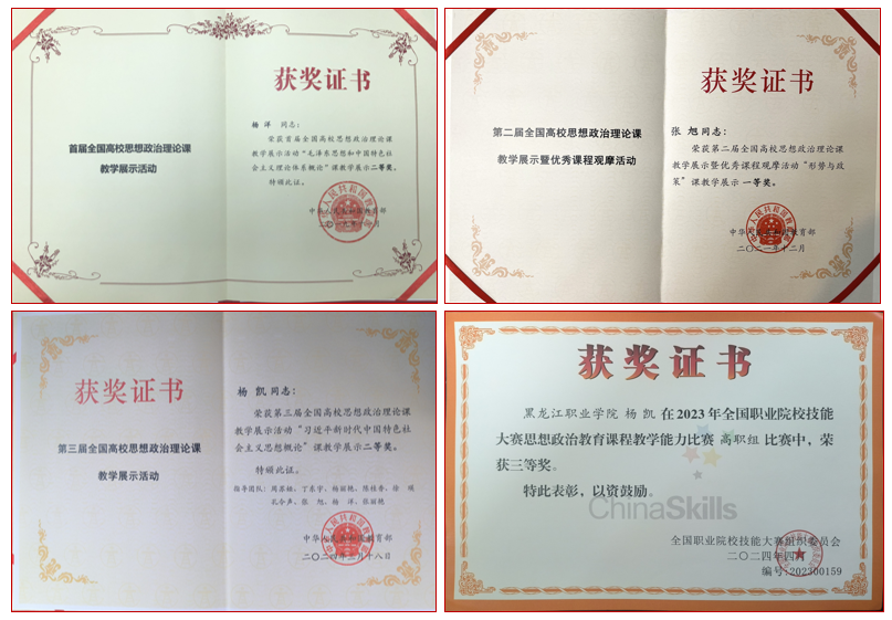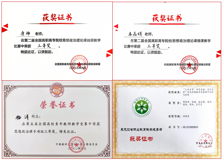 信念为磐,锻造忠诚之师。学院夯实党建工作,抓好基层党组织建设,坚持不懈用习近平新时代中国特色社会主义思想武装头脑,补足精神之钙。引导教师提高“政治三力”,绷紧意识形态之弦;引导教师用“四有”好老师”“四个引路人”“四个相统一”“六要”标准检视自己,躬耕教坛,践行使命,修身修为,弘扬主旋律,传播正能量。马克思主义学院现有省级思政课名师工作室1个,省级教学名师1名,省级优秀教师2名,校级师德先进个人5名,师德先进集体2个,优秀教师3名,优秀共产党员11名,2024年获省级师德先进集体荣誉称号,以优异的成绩成功入选黑龙江省首批高等职业学校特色马克思主义学院。