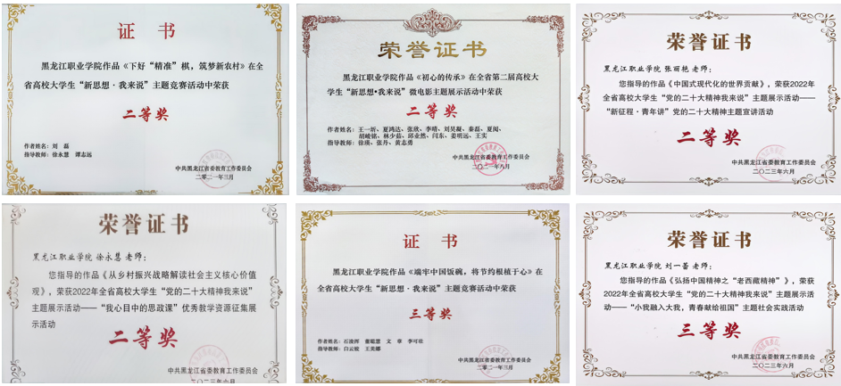 成果鉴行,彰显大思政课成效。学院教师连续5年悉心指导学生参加各类比赛,斩获累累硕果。获教育部奖项9项、省级奖项8项、优秀组织奖1项。培养了一批批理想信念坚定、人格健全、具有家国情怀、有责任担当的优秀学生,在各自的岗位上践行工匠精神,贡献自己的青春热血,彰显龙职学生“自强有为、兴业报国”的志向与担当,为社会进步注入源源不断的活力与希望。