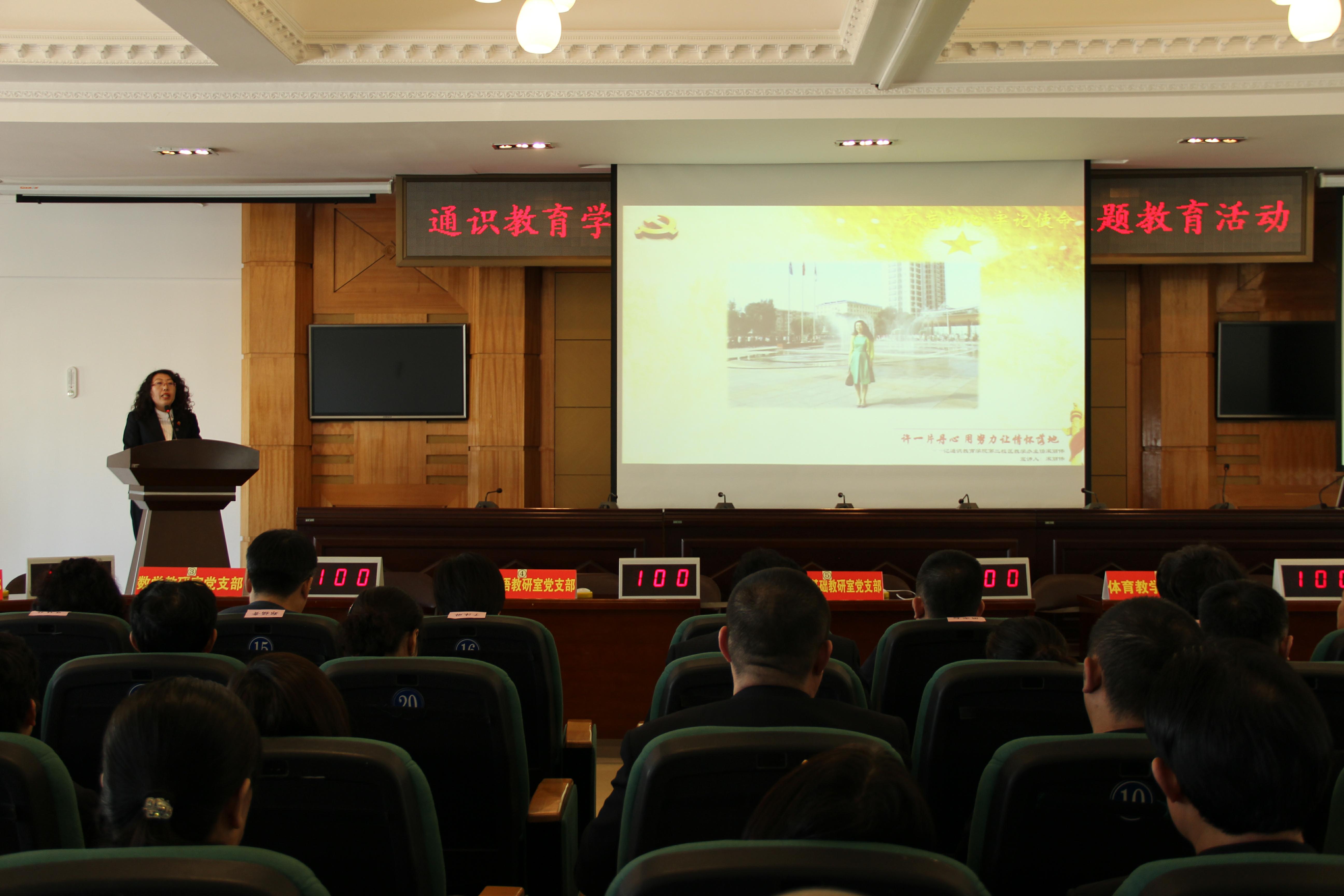 3月28日,通识教育学院召开“不忘初心、牢记使命”主题教育活动。学院领导班子和全体教职工参加了活动。校领导于沐琳、周家郁、郑福贵、周莲香、吴艳秋、钟敏强出席会议,党委宣传部部长尚久悦到会指导。此次教育活动正值在全院上下深入学习贯彻习近平新时代中国特色社会主义思想和党的十九大精神的重要时期召开,既是弘扬“龙职”精神、凝聚力量共识的“双讲”报告会,又是检验十九大精神学习成果的竞赛展示会,更是不忘初心、继续前进,助力优质院校建设的誓师推进会。活动结束后,副校长郑福贵做了重要讲话,对学院主题教育活动的策划、组织给予了充分肯定。一是通识教育学院启动早、行动快,第一时间组织开展主题教育活动,政治意识、大局意识较强。二是活动紧扣“不忘初心牢记使命”的主题,特色鲜明,具有很强的教育意义。三是活动形式新颖,三篇合一、三会一体,具有很强的引领示范作用。