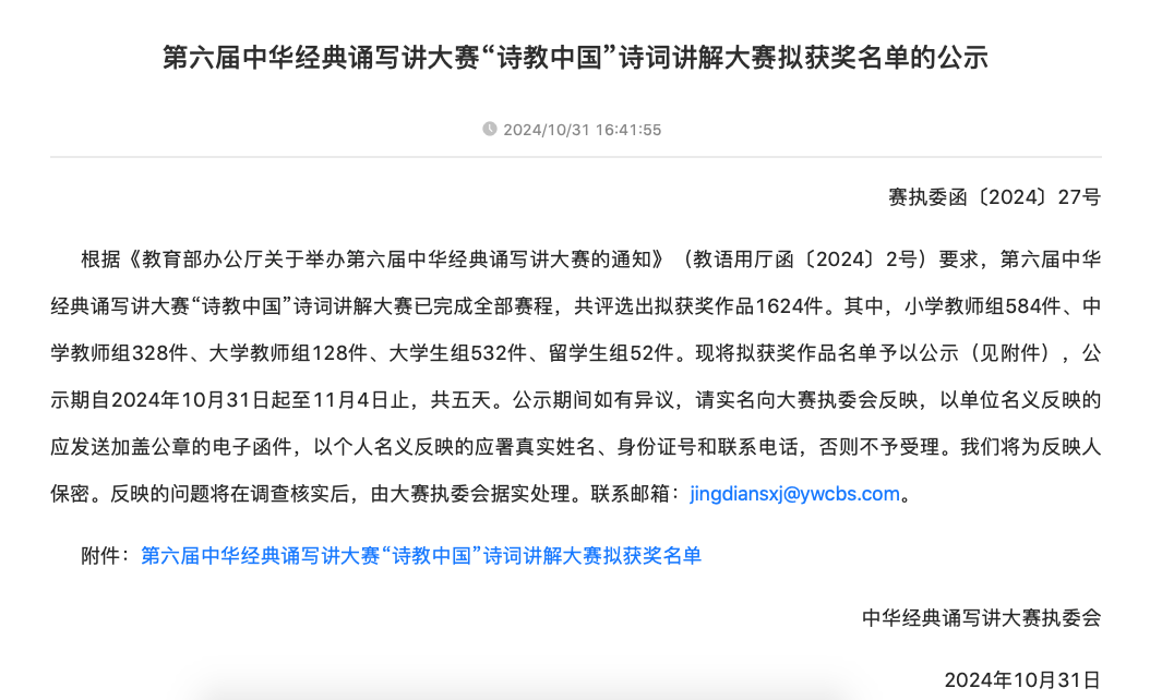必赢学生在中华经典诵写讲大赛获奖 实现零突破