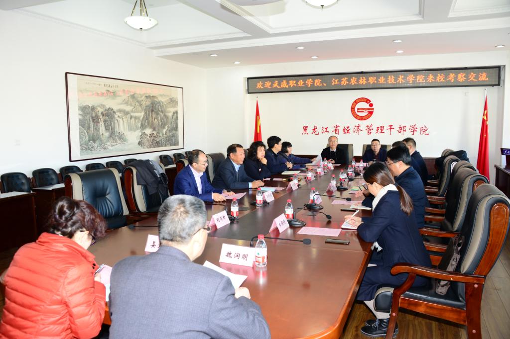 11月4上午,武威职业学院党委书记、院长赵明一行14人及江苏农林职业技术学院副书记简祖平一行4人来必赢进行学习交流,教务处、质量监控中心、招生就业处、思政教研部及相关二级学院参加了会议,党委书记赵继会、纪委书记周莲香及副校长王明海同志出席了会议。