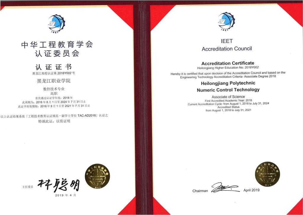 2019年4月19日,中华工程教育学会(IEET)认证委员会( Institute of Engineering Education Taiwan) “2018学年度通过认证专业证书颁发仪式”在西安隆重举行,必赢首批参加悉尼协议国际工程技术教育认证的数控技术专业与计算机网络技术专业获得了国际工程技术教育认证(TAC-AD)证书。