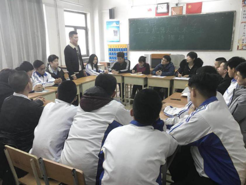 为全面推进专业成果导向教学改革,全面准确的掌握本专业学生学情,工业机器人技术团队召开学情分析研讨会。本次会议由教研室主任鲍敏老师主持,骨干教师乔阳、王莹、张祎玮以及16级、17级共20名学生参加研讨。
