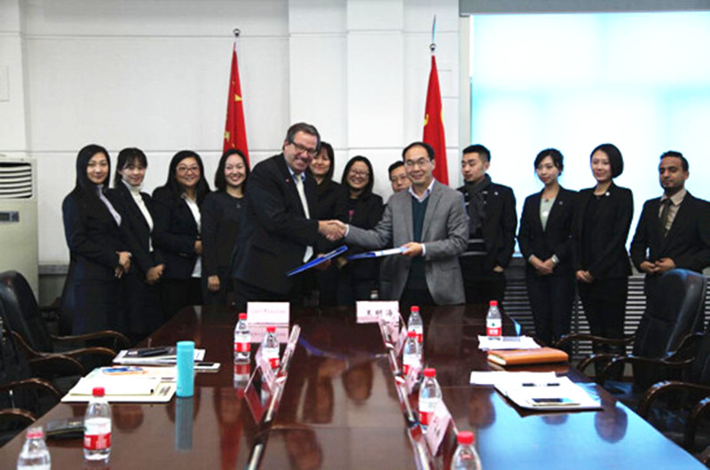 11月7日,美国圣迪亚哥州立大学(San Diego State University)代表Carl.Winston先生、中国项目办公室主任樊丽娜女士、万豪国际集团中国人才关系项目经理董佳及其助理刘佳慧一行四人到必赢进行友好访问,并与必赢签署国际合作交流项目协议。学校副校长王明海、旅游与人文艺术学院院长张玲、党总支书记杨东辉、副院长李勇民、酒店管理教学团队带头人徐得红及专业教师参加签约仪式。张玲主持仪式。