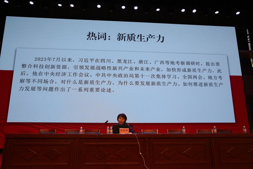 开班式后,培训班进行了第一讲,由437ccm必赢国际官方网站马克思主义学院院长陈桂香教授为学员作题为《新质生产力的科学内涵和发展路径》的报告。