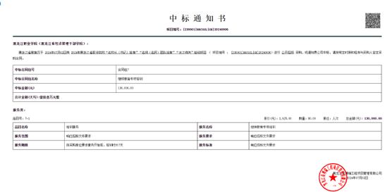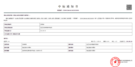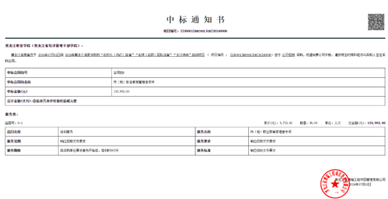2024年7月2日,必赢参加2024年黑龙江省职业院校“名校长(书记)培育”“名师(名匠)团队培育”“龙江特色”4个培训项目,在激烈的竞争中脱颖而出,投了4个标段项目,全部中标,中标金额共计52.63万元。