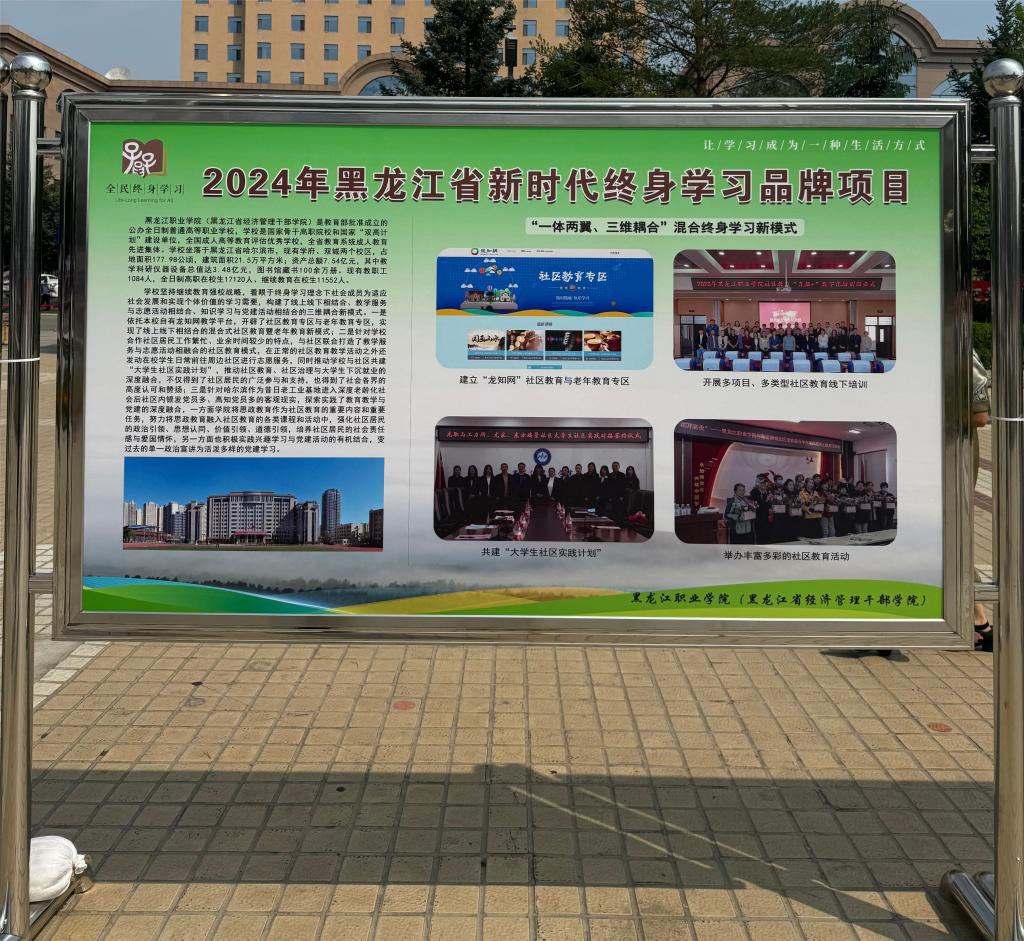 开幕式上,25位黑龙江省新时代“百姓学习之星”、24个新时代“终身学习品牌项目”受到了表彰。必赢报送的《“一体两翼、三维耦合”混合终身学习新模式》被评为2024年新时代“终身学习品牌项目”,是省内唯一获奖高校。与会期间,参观了黑龙江省各地终身教育成果展,作为参展单位,必赢以展板形式图文并茂地呈现近年来社区教育和老年教育取得的成果特色,践行了建设学习型社会的光荣使命。
