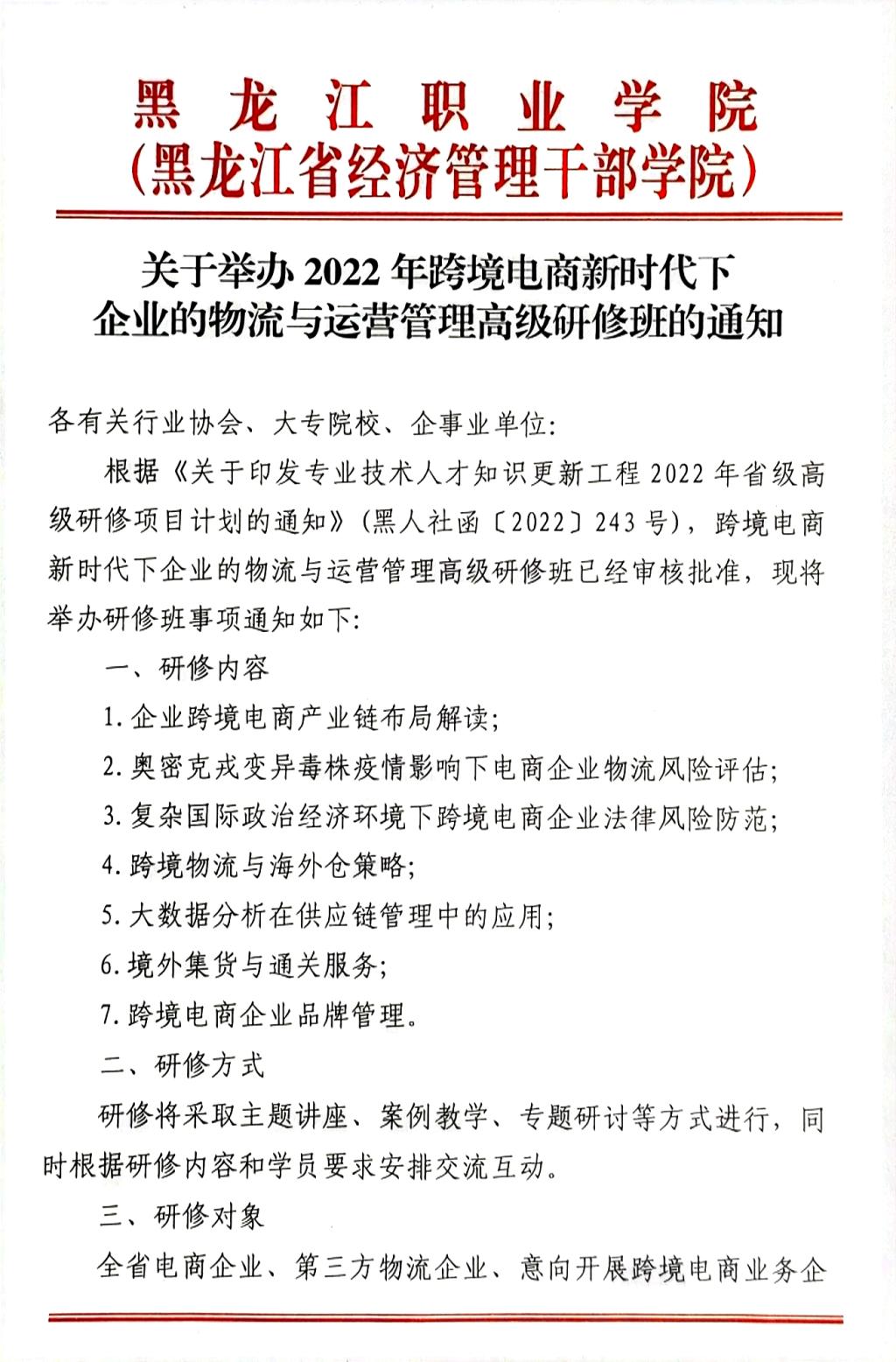 关于举办2022年跨境电商新时代下企业的物流与运营管理高级研修班通知