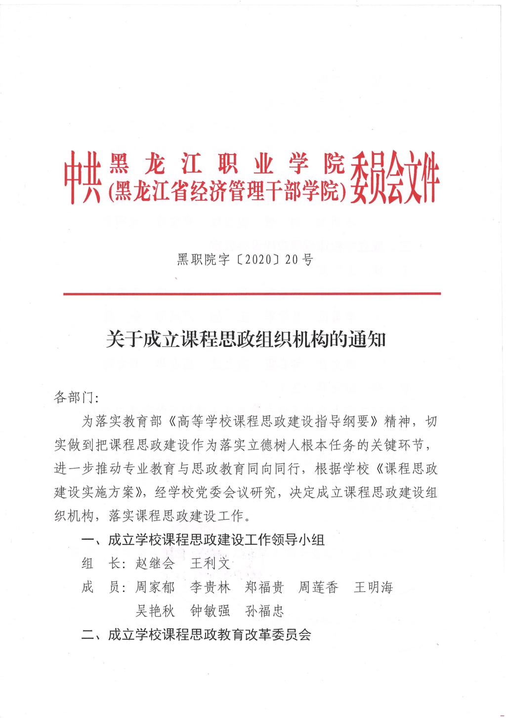 关于成立课程思政组织机构的通知