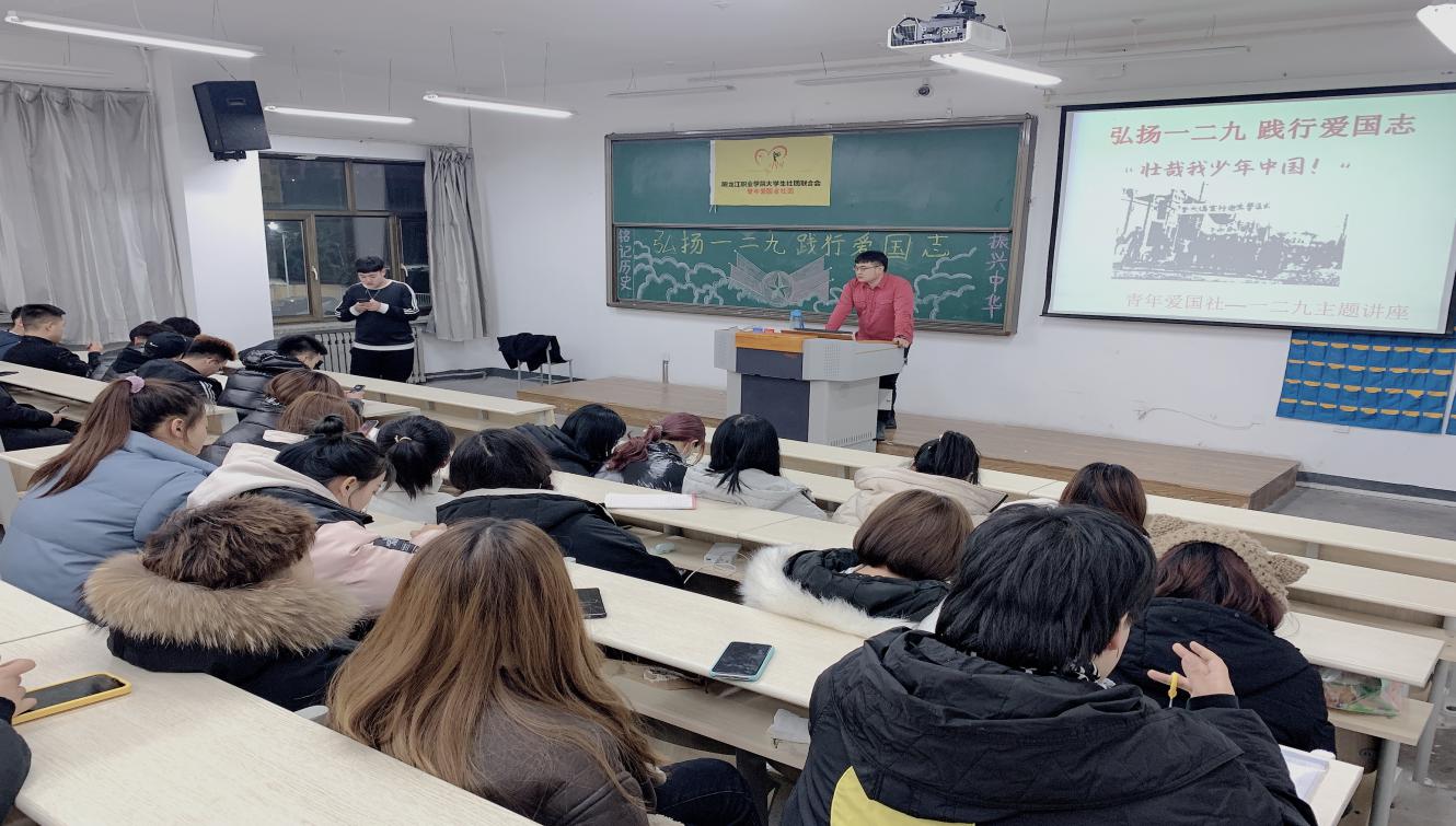 为纪念“一二·九”运动八十五周年, 弘扬爱国主义精神,增强学生的责任感和使命感,思想政治教研部青年爱国者社团于11月30日18点在清华楼西J201教室举办纪念“一二·九”运动主题讲座。