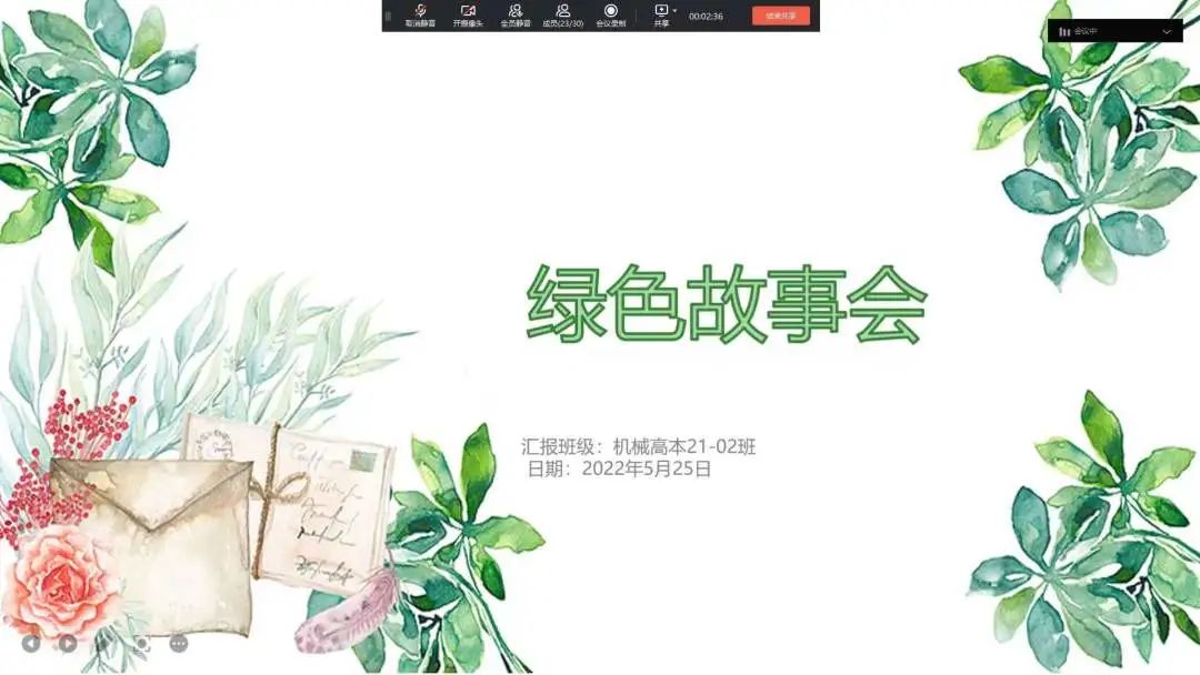 智能制造技术学院响应校团委号召,根据“春日呐喊——青春助力环保”活动内容,组织开展线上“绿色故事会”直播分享活动,分享自己的绿色养成之路,交流经验心得。