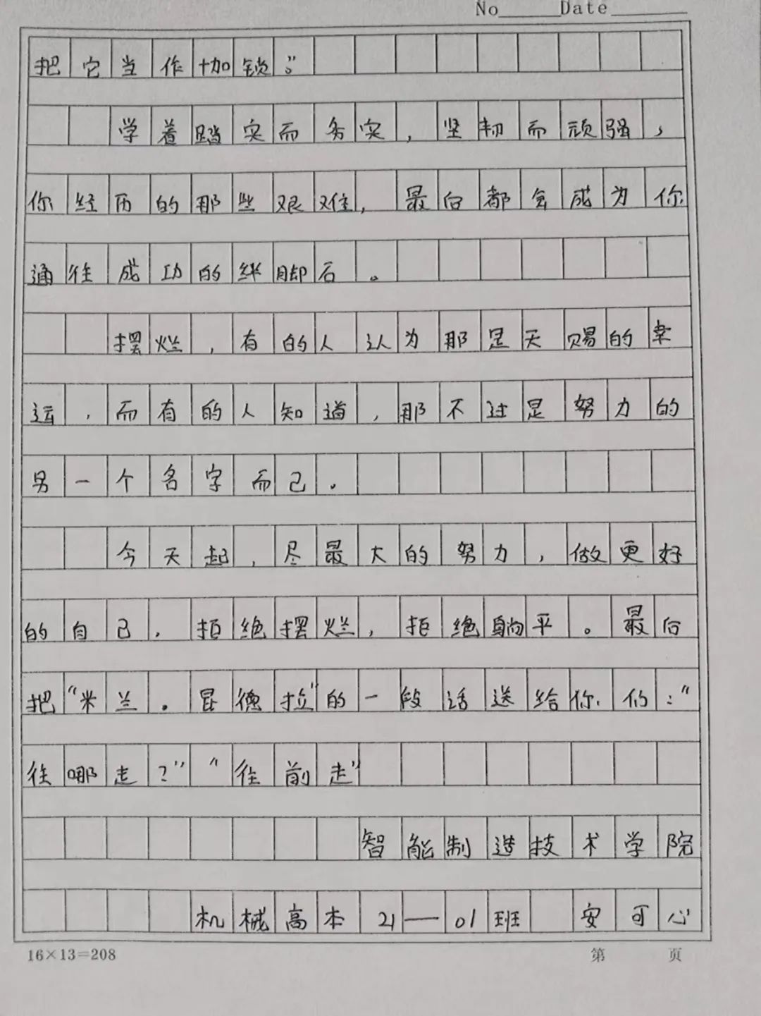为进一步加强必赢学生心理健康教育工作,积极引导学生在疫情期间关注心理健康,关爱自己心灵成长,正面激励学生成就自我,以成果导向理念为指导帮助每一名学生获得成功,智能制造技术学院开展“感恩、励志、诚信”主题活动。