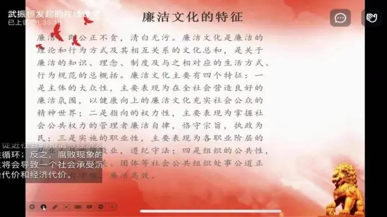 廉心聚力行稳,风清气正致远。通过此次线上主题团日活动的开展,营造了我院浓郁的校园廉洁文化氛围,使我院学生亲切的感受到廉洁廉政就在身边,接下来,我院将继续深入开展廉洁文化教育活动,让廉洁之风沁润师生心灵,让廉洁之花在我院绽放光彩!