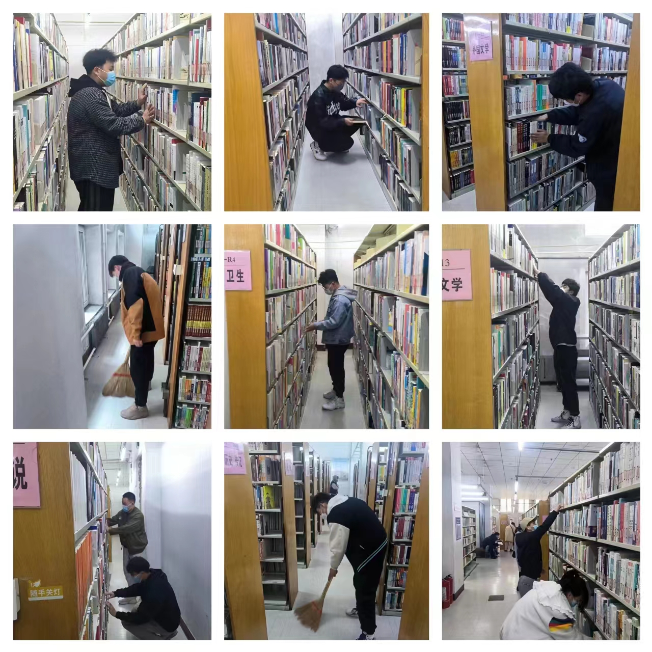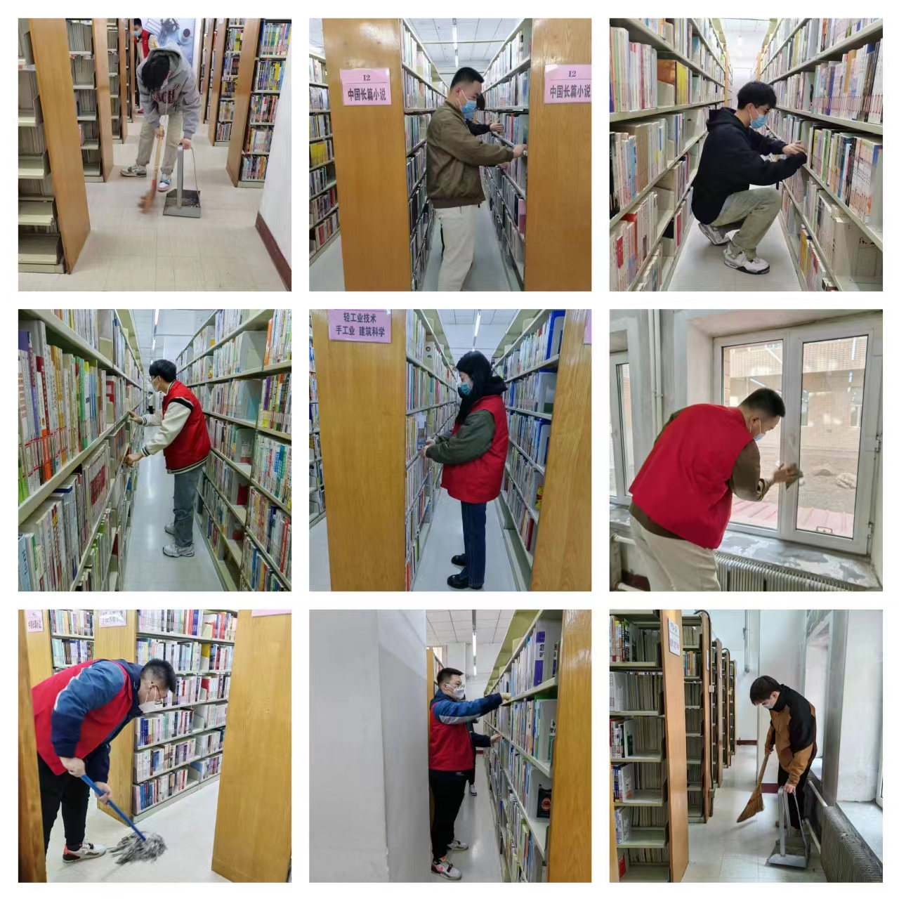 活动中,志愿者们积极参与,动作快捷,激情高昂,面对繁多、厚重的的图书不偷懒不松懈,快速完成了分配给自己的任务,将属于自己的书架打扫得一尘不染,为了不打扰到在图书馆看书的人们,大家在整理图书的过程中都十分小心。图书规律放整齐,充分展示了志愿者应有的勤奋认真、吃苦耐劳的精神风貌。