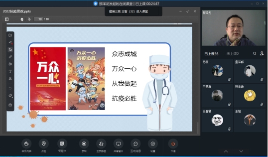 在课程的尾声,那泽龙老师勉励学生们:“虽然我们身处和平年代,但在这场没有硝烟的战争中,积极配合防疫工作,调整好心态,你们都是抗疫英雄!”