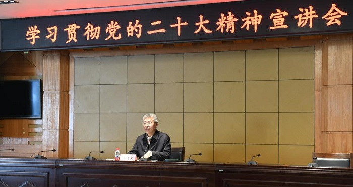 11月16日,王利文到工商管理学院宣讲党的二十大精神。他强调,要全面准确学习领会党的二十大精神,将党的二十大精神的丰富内涵、精神实质和实践要求学深悟透、入脑入心,推动党的二十大精神引领事业高质量发展。