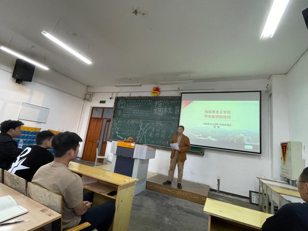 9月12日,马克思主义学院党总支书记程刚对22级宣讲团队学生代表进行关于23级新生思想政治宣讲活动培训。