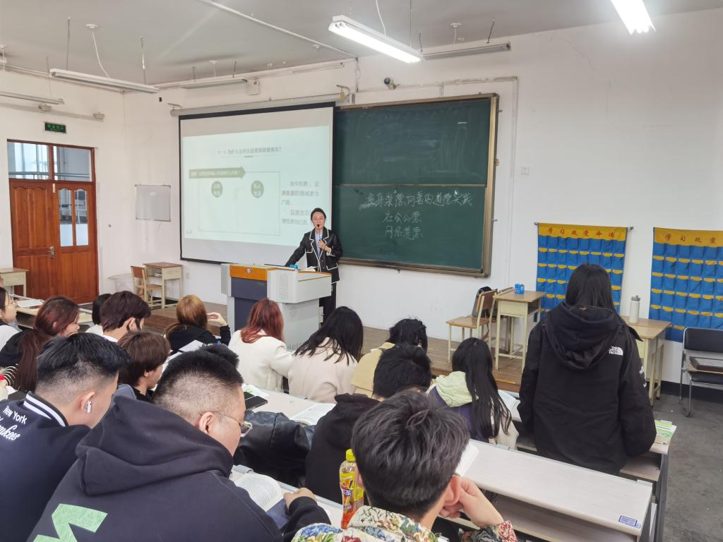 白云姣坚持问题导向,通过对校园生活中的公德和自媒体时代的网络道德的讲解,引导学生明大德、守公德、严私德,努力成为堪当时代重任的新时代青年。学生认真听讲,互动积极,课堂氛围活跃。