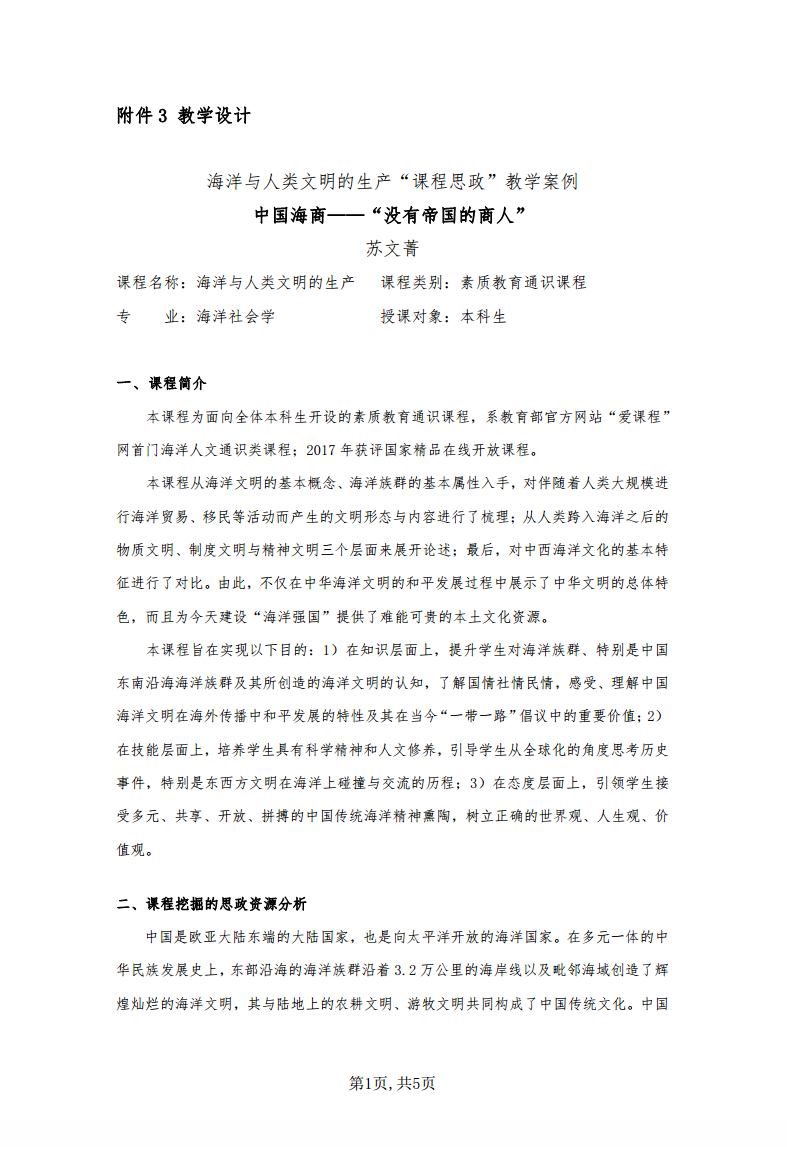 本文分享了优秀课程思政教学设计-《海洋与人类文明的生产》,供各位老师学习参考。