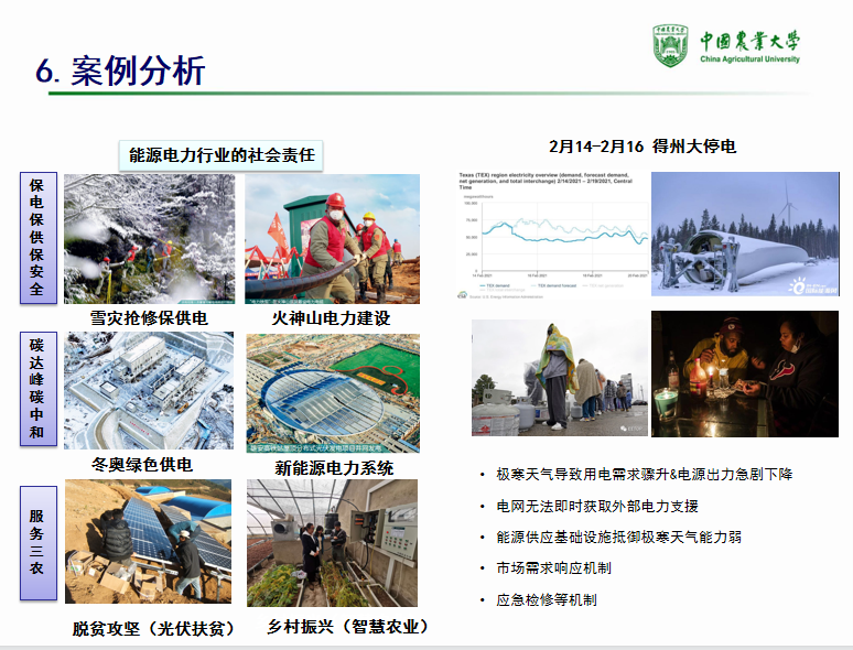 例如,2021年2月14日-16日,美国得州因极寒天气引发的大停电事故(见图4)。应用电力系统暂态稳定的分析方法,分析其大面积停电的原因,以及事故后可采取的提高系统稳定性的措施。并与中国电网同时期应对雪灾采取的措施进行对比,突出我国制度的优越性、国际领先的供配电技术等,进一步增强四个意识、坚定“四个自信”。