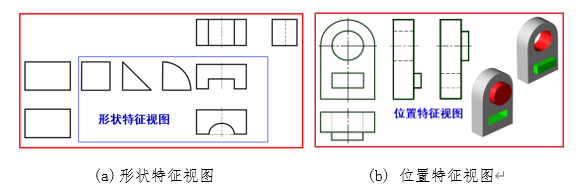 采用问题引入式,引入两组视图,如图2和图3所示,采用讲授式、启发式和讨论式讲解理论知识。由图2可知,两个视图不能唯一确定它们所对应的形体,需要把几个视图联系起来分析。分析图2和图3可知,抓住立体的特征视图能既快又准确的构想出相应的立体,读懂图样。