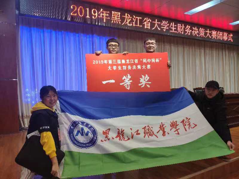 10月12日,在黑龙江省“网中网杯”大学生财务决策(高职组)大赛中,我院17级会计专业学生张索兵、李化雪、史佳楠、鞠国鹏组成的437ccm必赢国际官方网站代表队荣获一等奖。教学院长张振和与王璐老师负责带队,杨继杰、王欢任指导教师。