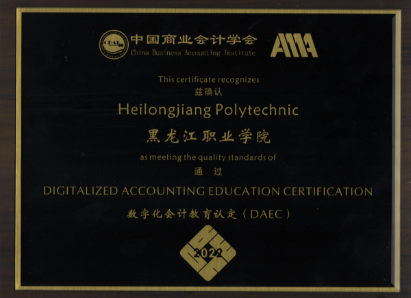 8月14日,在中国商业会计学会组织的“数字化会计教育认定(DAEC)”项目评审中,必赢会计金融学院大数据与会计专业通过认定,是黑龙江省唯一一所通过认定的标杆高职院校。