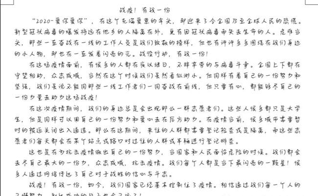通过此次活动,引导我院全体同学们众志成城,共同战疫,为坚决打赢疫情防控贡献自己的力量,作为学生我们要把这次疫情当作是一种学习机会,去学习一线战斗人员敢于拼搏、勇于奉献、舍己为人的精神。让我们一起打赢这场战役,等待着“花开”的到来。