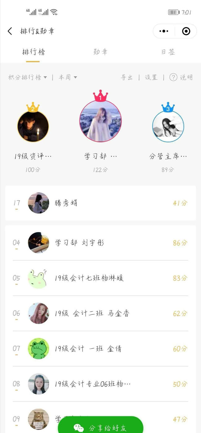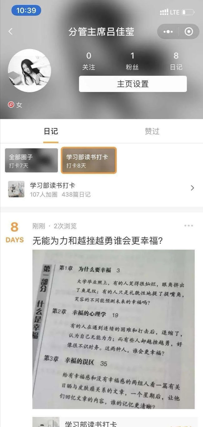 读书让同学们的视野更开阔,焕发出勃勃的生机。为让同学们养成每日阅读的良好习惯,学习部举办读书打卡活动,每个班级班长带领同学们每天进行打卡,看的书籍积极向上,分享阅读内容、趣事、感想、照片,参与读书打卡的同学不得抄袭,不得网上下载,要有正能量的文章,公众号上不仅有同学们的发自内心的感慨与心得,也有同学们的评论与感同身受,爱读书,这种氛围养成了同学们良好的读书风气。