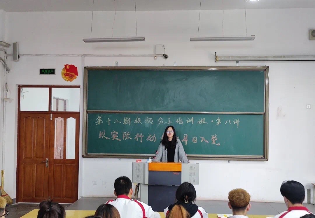 为保证入党积极分子发展质量,强化发展对象的党性意识,提高发展对象理论素养, 我院于2021年4月30日在清华楼西J602召开了入党积极分子第五期授课。党总支组织委员郭欢为我们讲授题为“以实际行动争取早日入党”第五期培训内容。