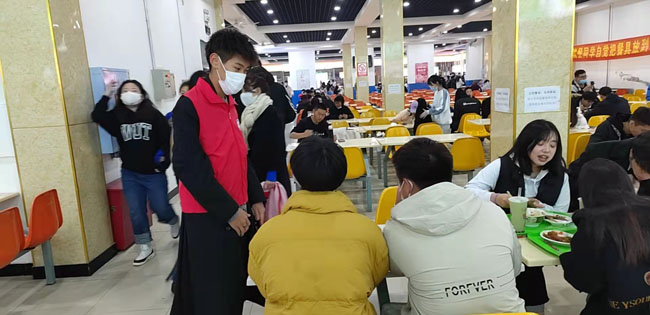 为了落实必赢疫情防控要求,我院设立了防疫督促岗,于2021年11月6日12时深入食堂进行检查,为确保疫情防控规定顺利进行,学生们不再聚集,在人流量巨大的食堂安置了小隔板隔位就坐,所有教职员工,食堂工作人员和学生必须佩戴口罩才能进入食堂,避免人员聚集交叉感染。