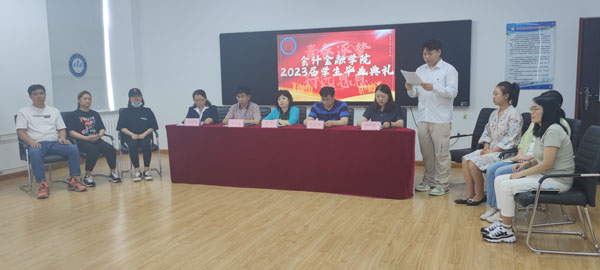 会计金融学院于2023年6月14日下午13:00,在工匠楼603举行2023届学生毕业典礼。出席本次毕业典礼的学院领导有:会计金融学院党总支书记张振和,会计金融学院院长张利,会计金融学院党总支副书记姜婷婷,会计金融学院副院长杜国用。以及教师代表杨鑫慧,2023届全体辅导员和2023届全体毕业生。