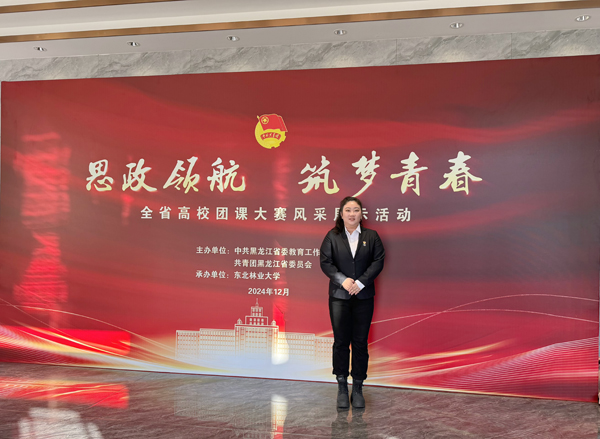 2024年12月11日,黑龙江省“思政领航 筑梦青春”团课大赛在东北林业大学科学会堂举行。大赛启动后,各高校积极响应。我院两支队伍经过校级初赛进入省级评审阶段,分别荣获教师组省级三等奖和学生组省级二等奖。学生组获奖团队由孙禹彤、孙萌、马雨竹、张宝丹四人组成,作品以实践研学为主题,展现了青年学生的蓬勃朝气与爱国情怀。教师组获奖者为团总支教师副书记刘珈岐,其作品深入阐述东北抗联精神,为青年学生提供了宝贵的精神财富和思想指引。