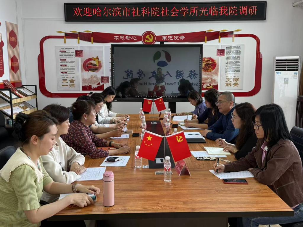 6月4日下午,哈尔滨市社会科学院社会学研究所、文化旅游研究所一行5人赴我院开展专题调研,深入探讨哈尔滨冰雪旅游产业高质量发展所需的人才支撑体系。调研座谈会围绕文旅专业教育基础、人才培养与流动、校企协同创新三大维度核心问题展开。调研组由社科院社会所所长丁继成带队、我院班子成员及部分教研室主任参会。