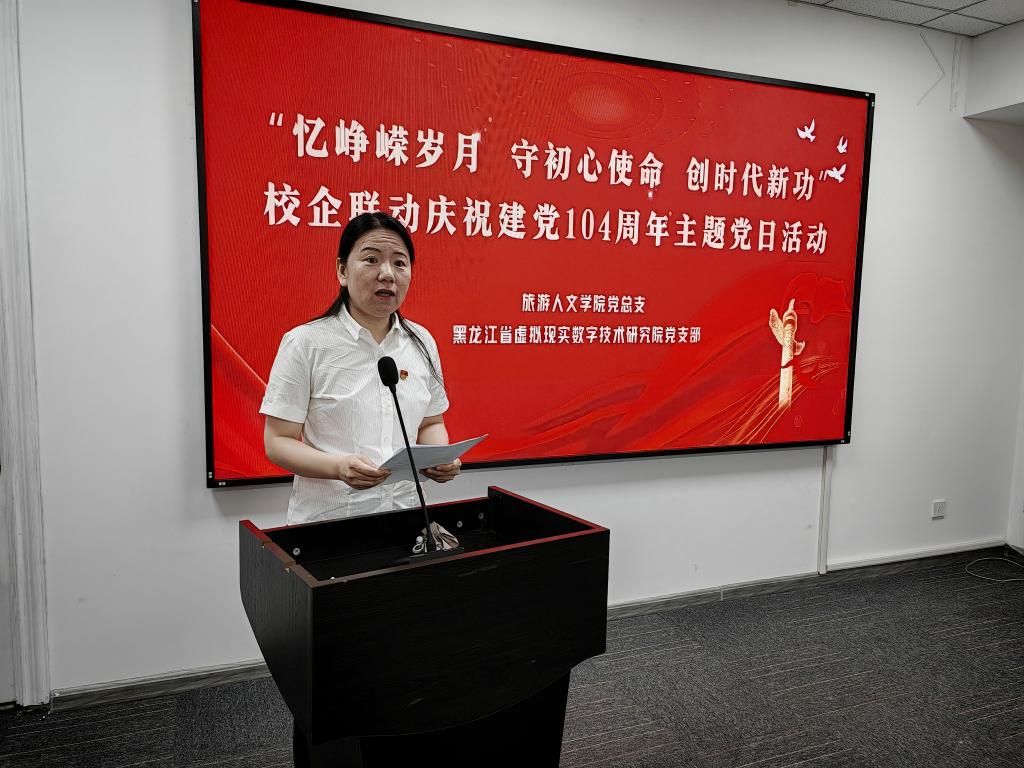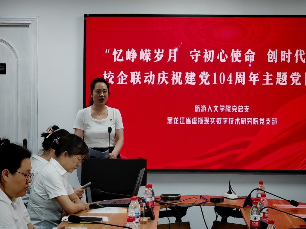 6月27日,我校旅游人文学院党总支与黑龙江省虚拟现实数字技术研究院党支部在哈尔滨爱威尔科技有限公司联合举办“忆峥嵘岁月·守初心使命·创时代新功”庆祝建党104周年主题党日,双方全体党员及民主党派人士积极参与活动。