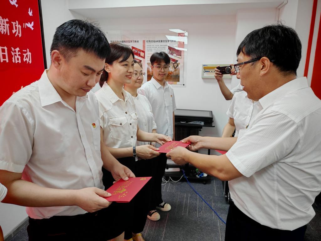 最后,旅游人文学院党总支书记孙亮亲手为党员代表赠送“政治生日”贺卡,并带领全体党员重温入党誓词,活动在铿锵有力的誓言中达到高潮。本次校企联动庆华诞,以“政治生日”仪式将教育与科技创新企业相结合,为科技创新与育人事业注入红色基因,将为合作提供有力的动能支撑。