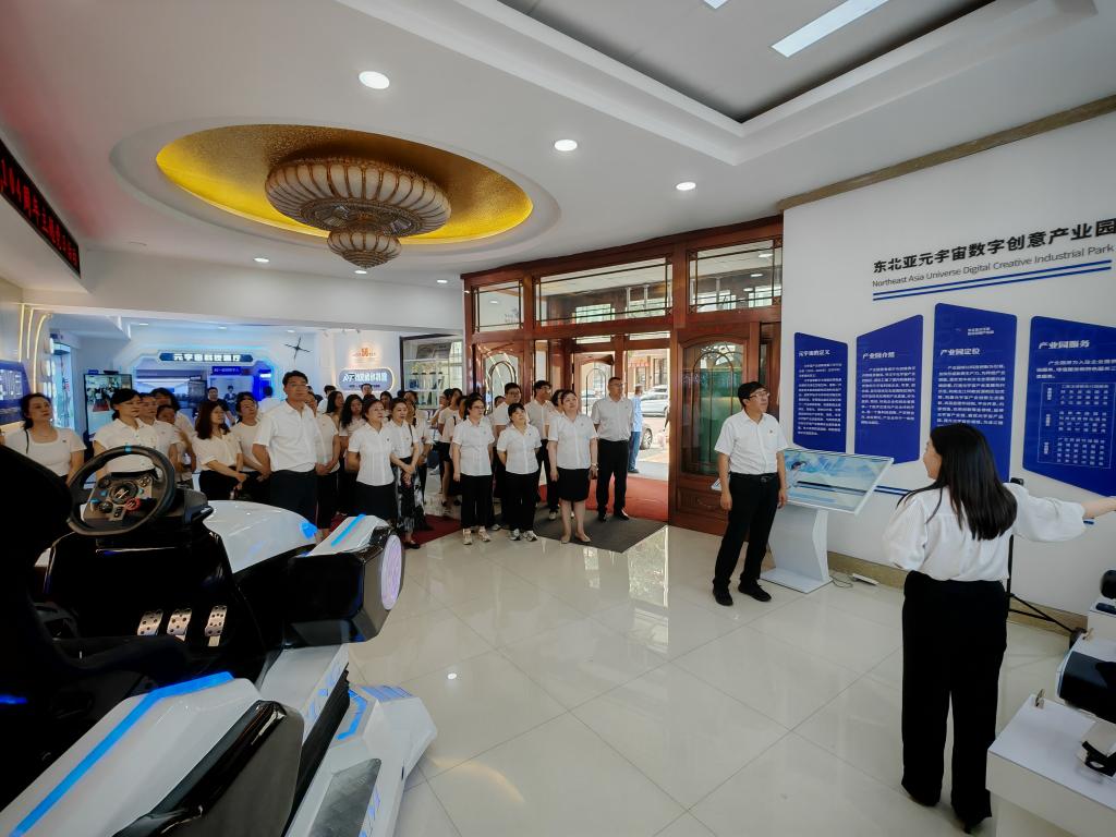 为深入掌握数字科技前沿动态,探索文旅融合新路径,6月27日下午,旅游人文学院领导班子率广大师生代表前往哈尔滨爱威尔科技有限公司旗下的“元宇宙数字创意产业园”参观学习。