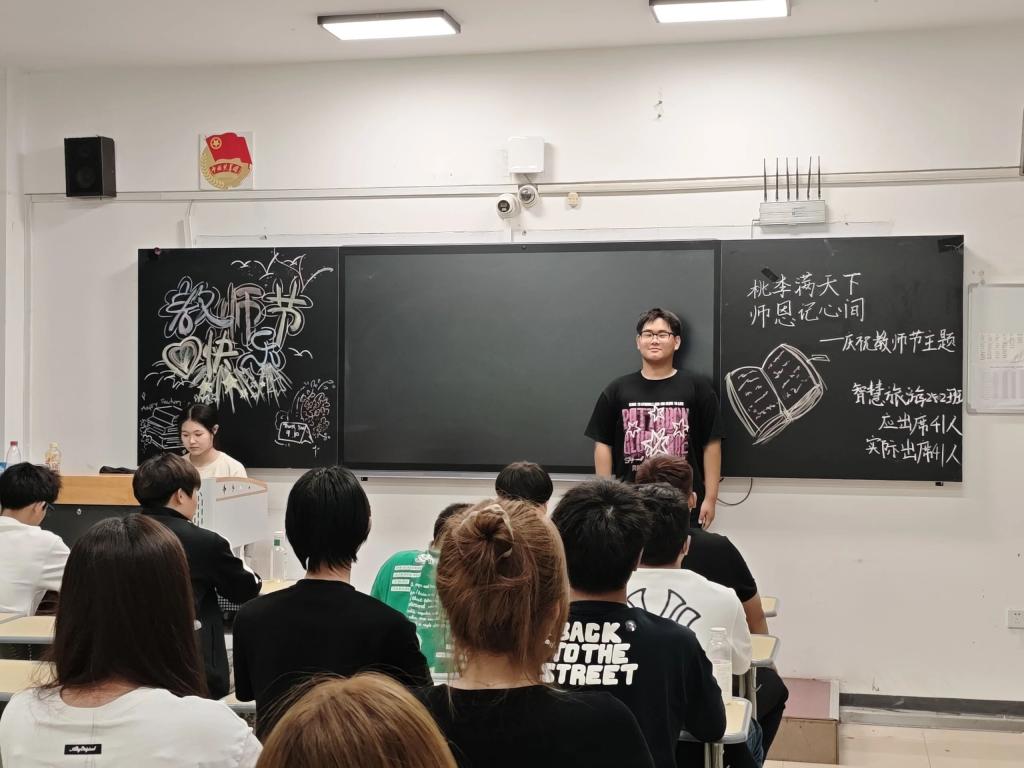 在第41个教师节来临之际,为深化尊师重教校园风尚,搭建师生近距离交流的温暖桥梁,旅游人文学院于9月10日晚,精心组织“感恩伴学 致敬师者”特色晚自习活动。我院大一学生积极参与,用“学习+感恩”的双重形式,为辛勤耕耘的教师们送上别样节日祝福.