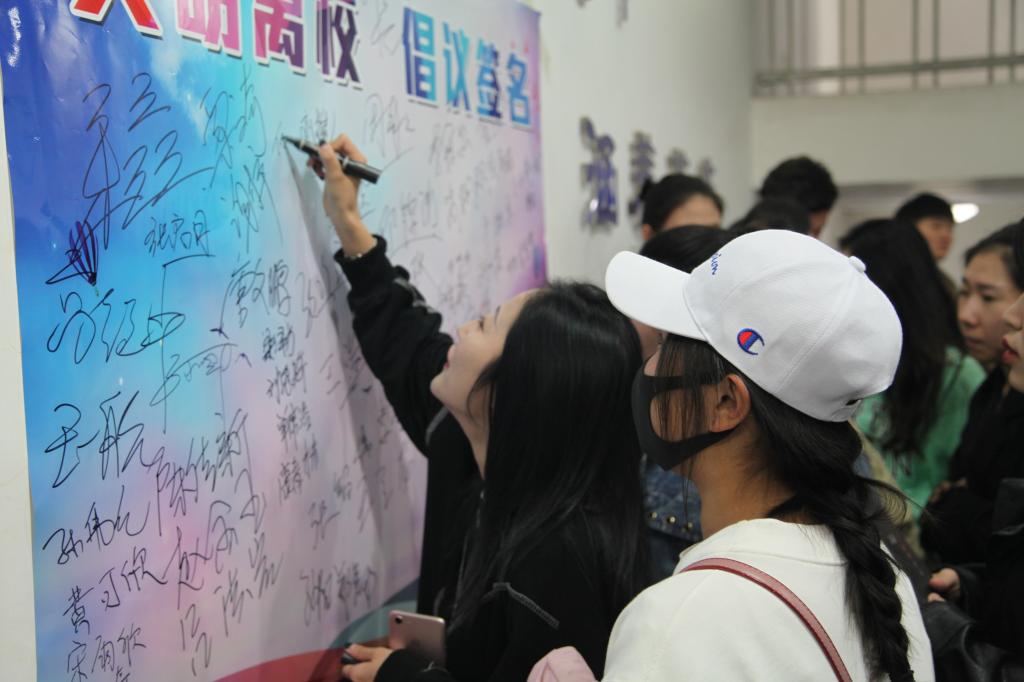 本次活动参与的学生人数达300人左右,共计收到260件各种闲置物品,有衣物、体育用品、课外书籍等,种类繁多。有的学生还在捐赠物上写上了意味深重赠语,大家还纷纷在签名墙上留下了自己名字。