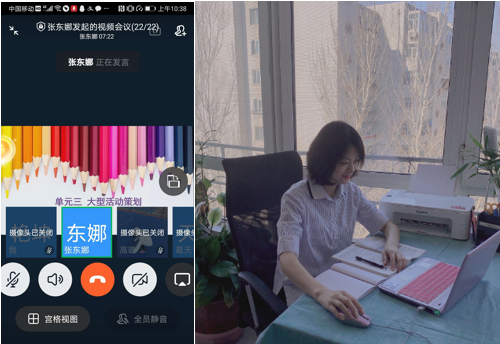 资源学习之后,教师召开钉钉会议,互动提问,巩固学生所学知识。然后进行项目推进,教师运用共享ppt讲解项目环节所须注意事项,学生共享屏幕展示阶段成果,师生共评,确定方案进展。