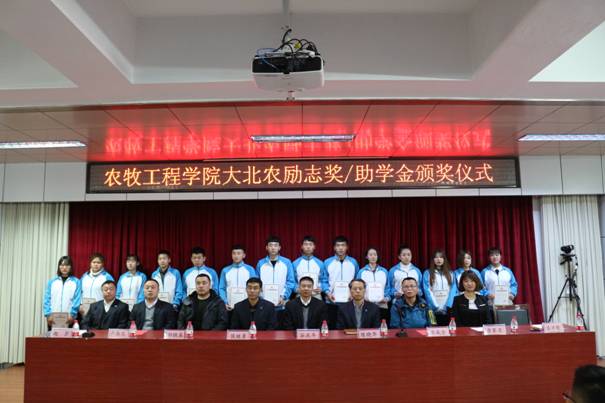 2017年11月10日晚6点,农牧工程学院与大北农集团在二号教学楼六楼会议室举行了“大北农励志助学金”发放、2017级大北农班开班仪式和2016级学生宣讲面试活动,大北农集团东北大区人力市场部总监谷庆年、大北农集团东北大区黑龙江区基地总经理石成金、大北农集团东北大区黑龙江行政部总监郭铁赢、大北农集团东北大区吉林行政部总监盛洪健、黑龙江大北农农牧食品有限公司双城办公室经理卢海龙、哈尔滨大北农人力部招聘主管唐赛男、农牧工程学院院长陈晓华、党总支书记侯继勇、副院长赵岩、辅导员宓宪伟、齐欣及2016级畜牧兽医类专业的150多名学生和2017级大北农订单班的29名学生参加了会议。会议由副院长赵岩主持。