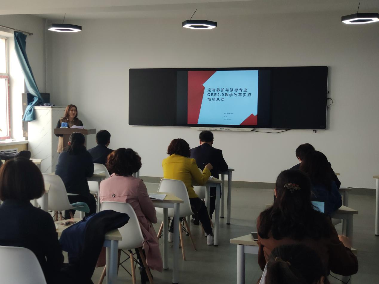 会上,畜牧兽医教研室主任孙耀辉、动物医学教研室主任孙洪梅、宠物养护教研室教师宋林、园林技术教研室主任代明慧,以专业角度从人才培养方案、课程体系、课程模式、课程设计、教学实施、存在问题等方面,分别对畜牧兽医专业、动物医学专业、宠物养护与驯导专业、宠物临床诊疗技术专业和园林专业进行汇报。