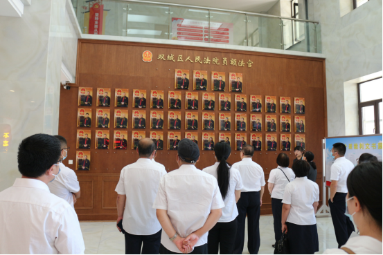 在工作人员的带领下,分别参观了双城区人民法院员额法官墙、十佳(差)文书展示板、党建大厅、科技大法庭、执行指挥中心、能力作风建设专题展、活动展馆及党建活动室等场所。