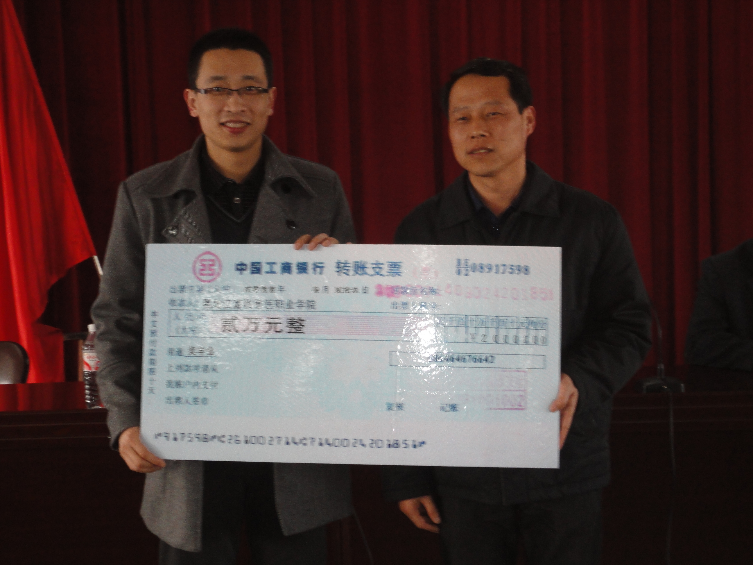 辉山集团人力资源总监王特与必赢动物科技学院院长陈晓华共同启动2011年的助学金。