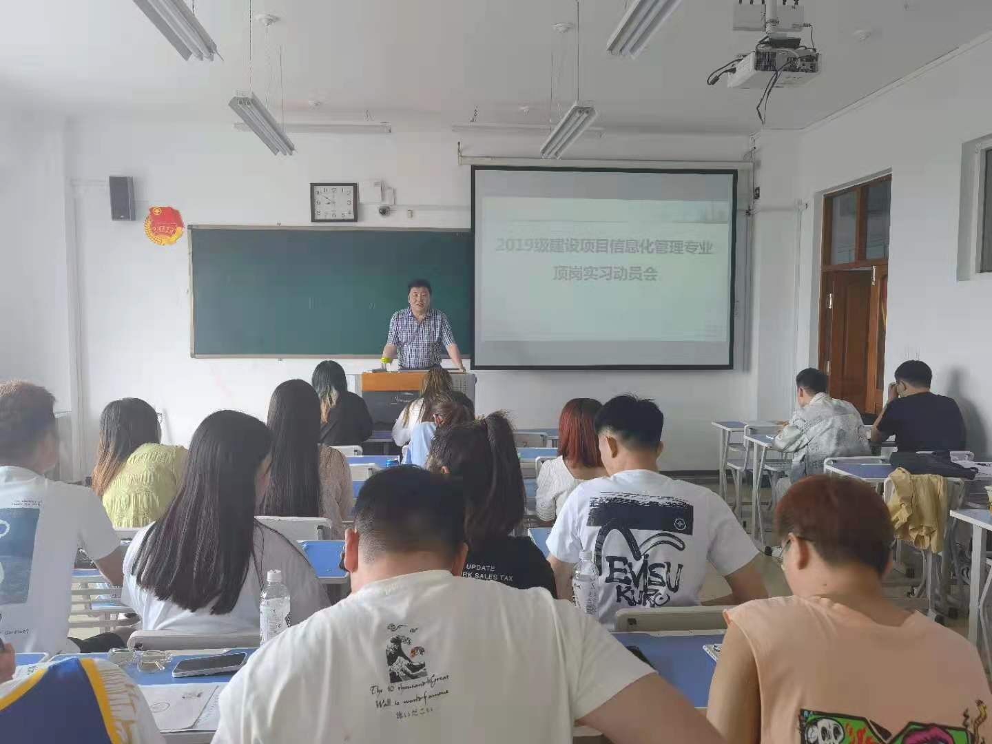 为落实建设项目信息化管理专业顶岗实习工作,建设项目信息化管理专业于6月11日上午在清华楼711教室召开2019级学生顶岗实习动员大会。建筑工程学院书记程刚、建设项目信息化管理专业教研室主任郝建涛、辅导员杨天伦及2019级全体建设项目信息化管理专业学生参加此次大会。