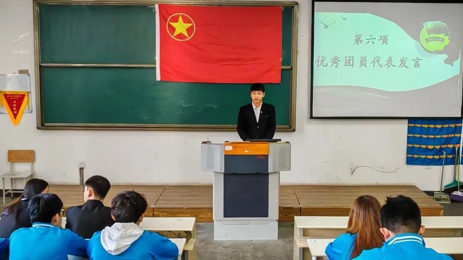 仪式现场气氛严肃而热烈。团旗飘扬,团歌激昂。新团员们整齐列队,眼神中透露出坚定与自豪。团总支书记张钧铭在最后的讲话中,希望新团员们坚定理想信念,以身边的优秀学生党员为榜样,立大志、明大德,将个人梦想融入国家发展、民族复兴的伟业中。