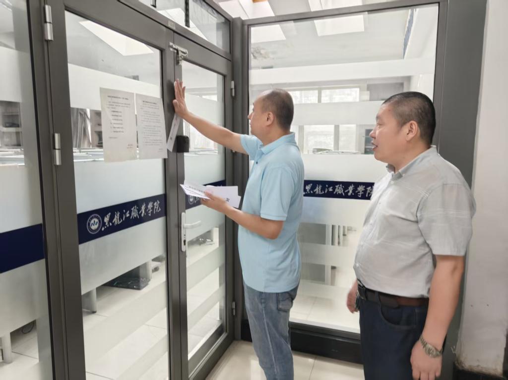 检查小组首先对实训实验教室进行细致查看,重点检查了卫生情况、实验设备是否关闭、电源插座是否存在松动、线路有无老化、消防设施是否能够正常使用等。随后,对分院办公室的门窗、办公设备电源、资料存放等情况进行检查,确保所有设备、重要资料妥善保管,门窗符合学校安全要求。